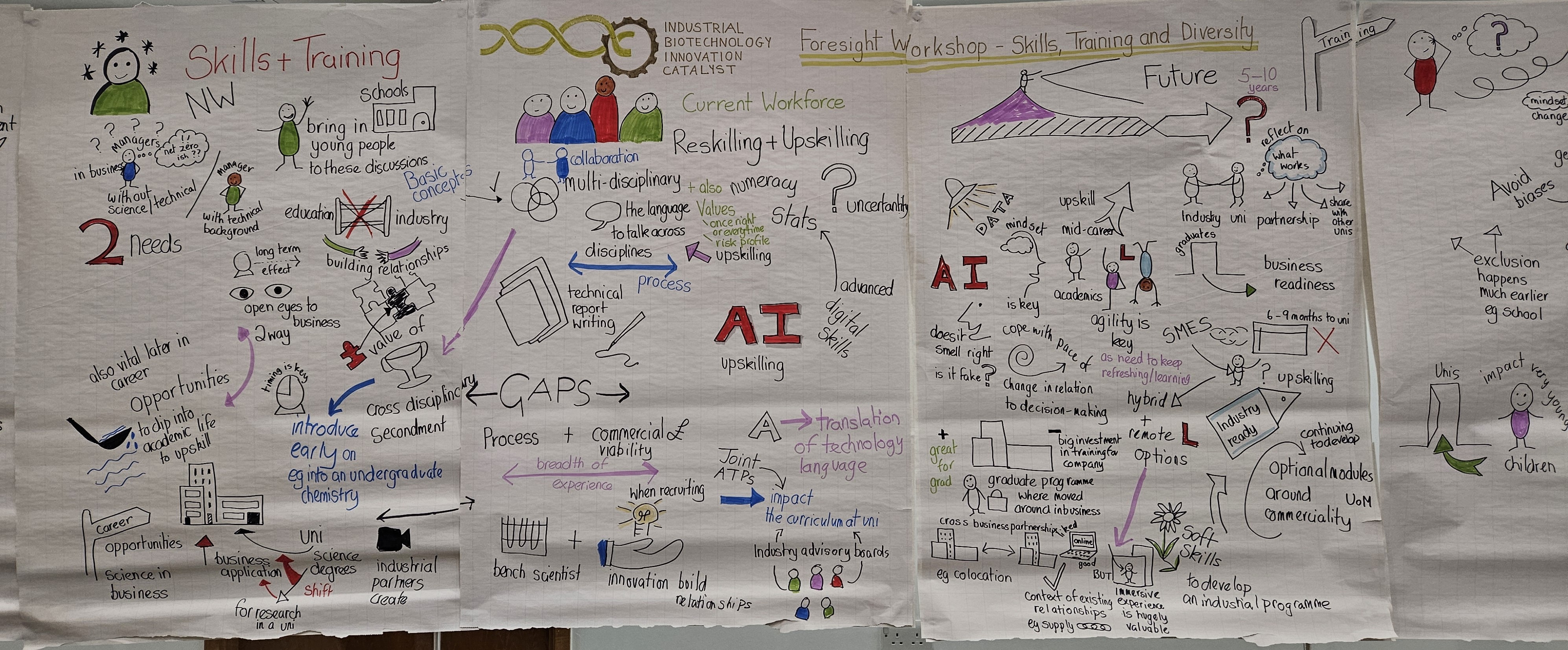 Three foresight workshops were held at the Manchester Institute of Biotechnology, as part of the UMRI-funded project “Pathways for Sustainable Biomanufacturing Futures”, with 37 participants, ranging from manufacturers, end-users, policymakers, trade associations and academic researchers.